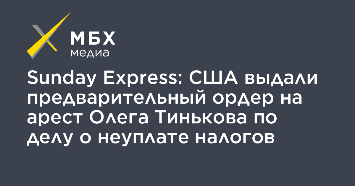 Sunday Express: США выдали предварительный ордер на арест Олега Тинькова по делу о неуплате налогов