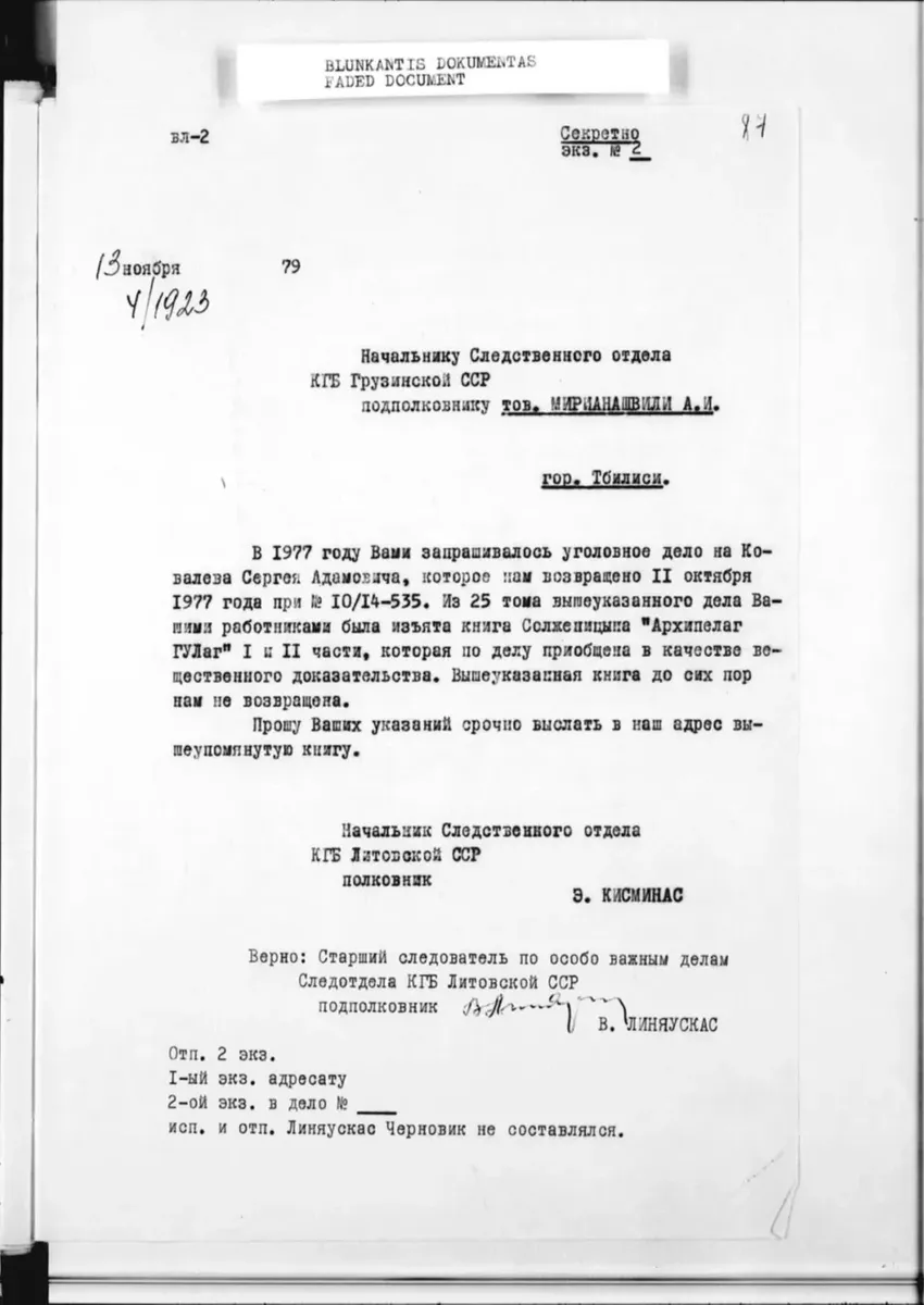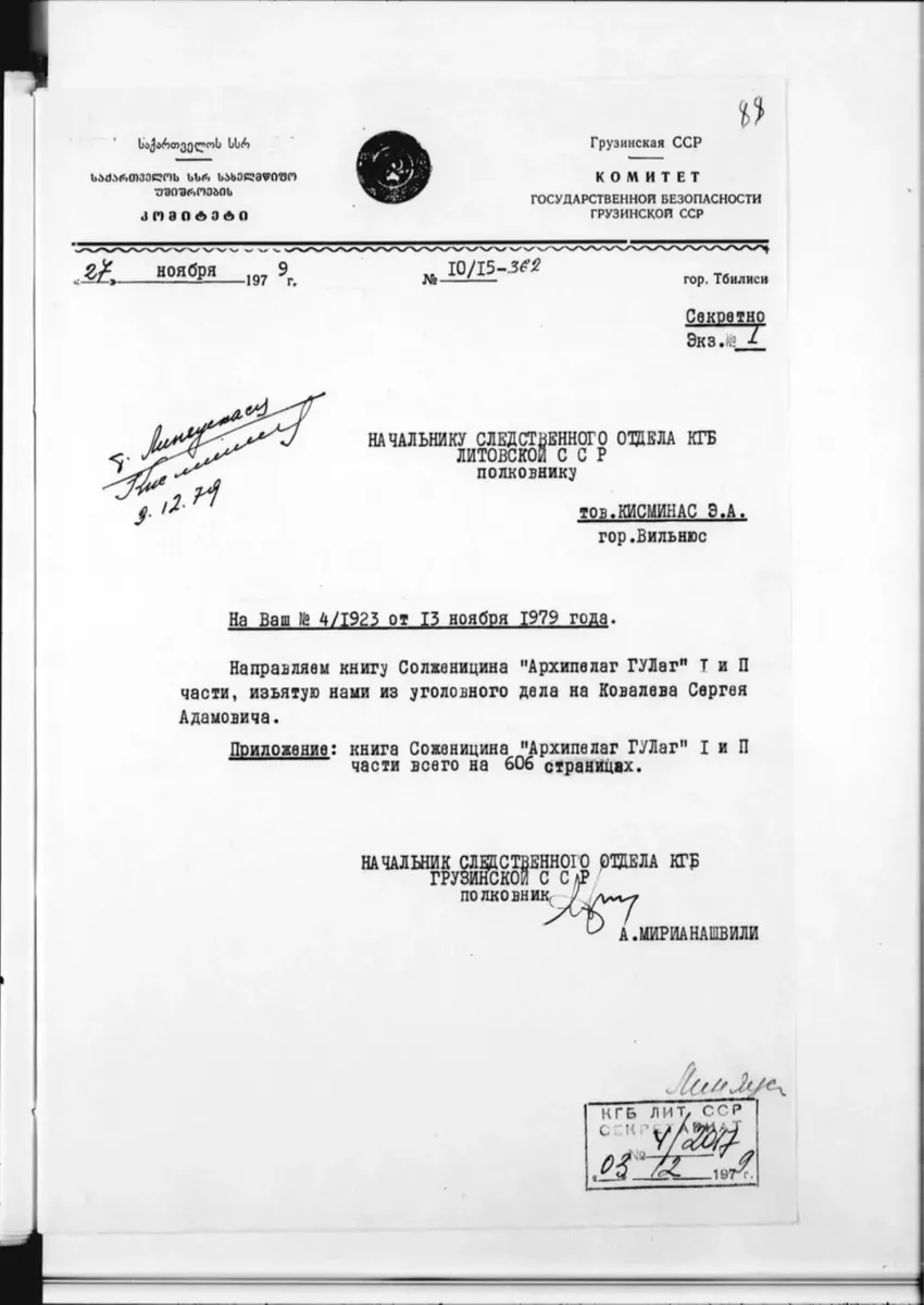 — На следствии ему (Сергею Ковалеву) предъявляются многочисленные документы «клеветнического содержания» с его же рукописными пометками — проверить, сопоставить, уточнить… Тот еще клеветничок…