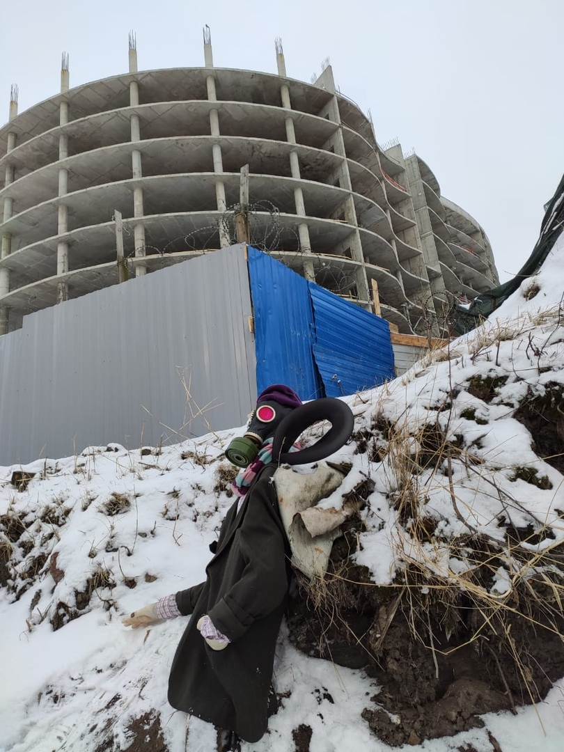 На заброшенной территории на пересечении Зольной улицы и Дальневосточного проспекта экоактивисты установили чучело в противогазе. Об этом сообщается в группе «Гражданский патруль» во «ВКонтакте».