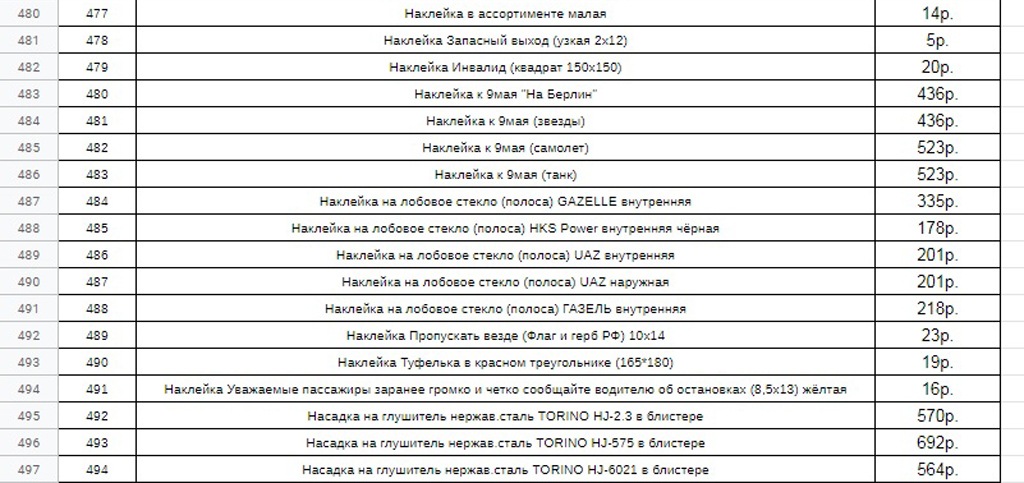 Отметим, что наклейки до сих указаны в приложении к конкурсной документации на сайте госзакупок. Кроме того, они находятся в разделе «аксессуары», который не доступен через программу Excel в Windows, но, например, открывается с помощью «Google Таблицы», в которых он был указан как скрытый.
