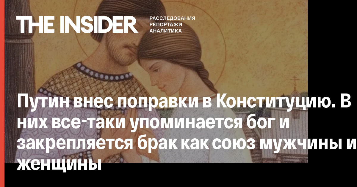 Путин внес поправки в Конституцию. В них все-таки упоминается бог и закрепляется брак как союз мужчины и женщины