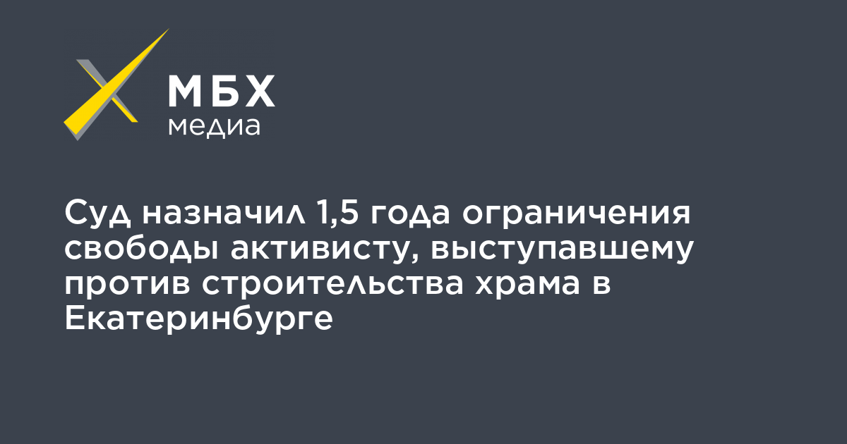 Суд назначил 1,5 года ограничения свободы активисту, выступавшему против строительства храма в Екатеринбурге
