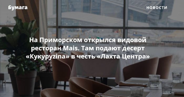 В здании «Тинькофф Арены» на Приморском проспекте, 80 открылся ресторан Mais с видом на башню «Лахта Центра». Об этом «Бумаге» рассказали в пресс-службе компании Ginza Project, запустившей проект.
