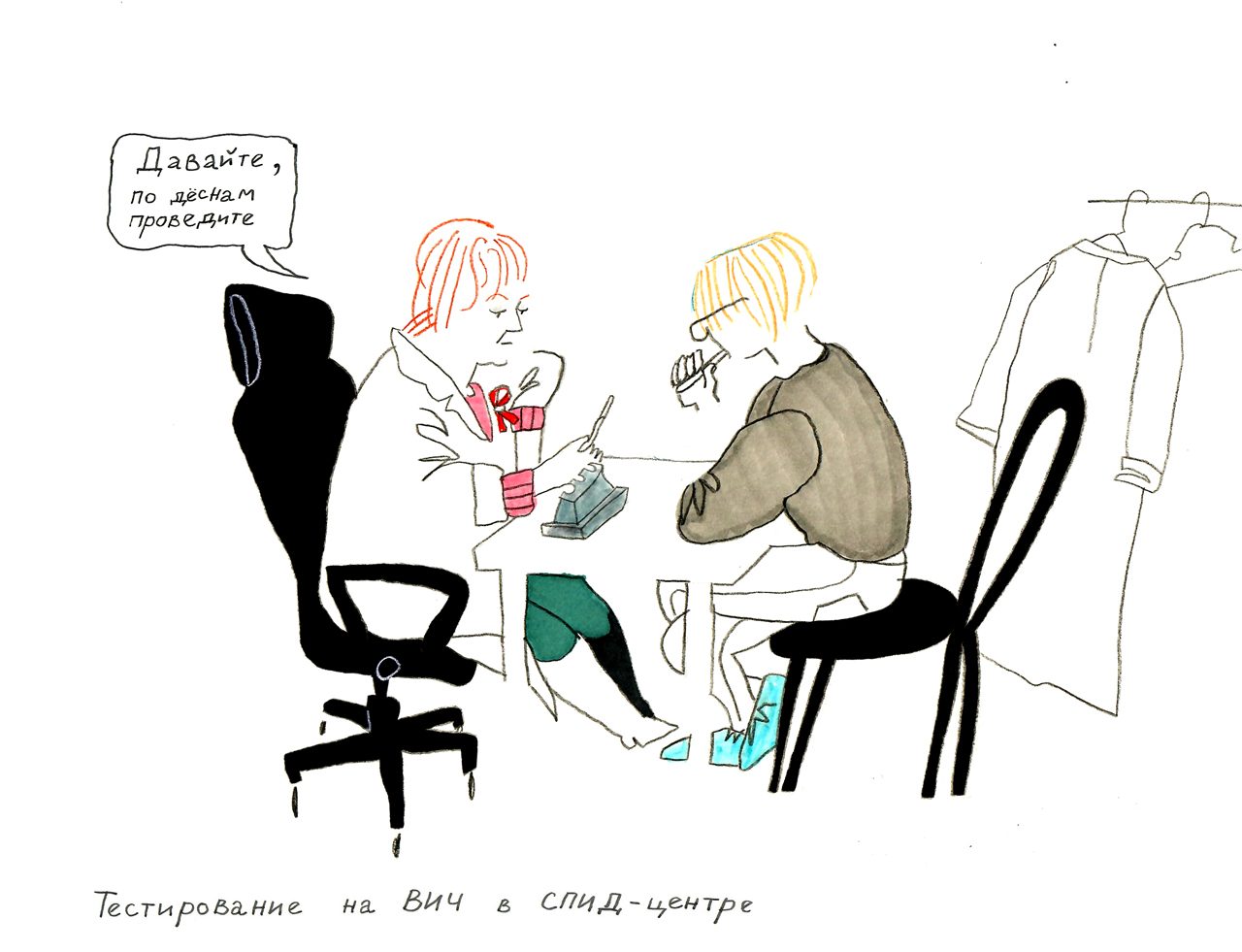 Энтузиазма после выписки из рехаба хватило, чтобы доехать до «Центра СПИД», пройти нужные обследования и сдать анализы, хоть и было нелегко: очереди в «Центре СПИД» тогда были внушительные, помещение маленькое, а врачей не хватало. Диме сказали приходить через полгода: антиретровирусную терапию тогда не назначали сразу. Требовали только периодически сдавать кровь, чтобы проверять показатели иммунитета и контролировать развитие ВИЧ-инфекции.