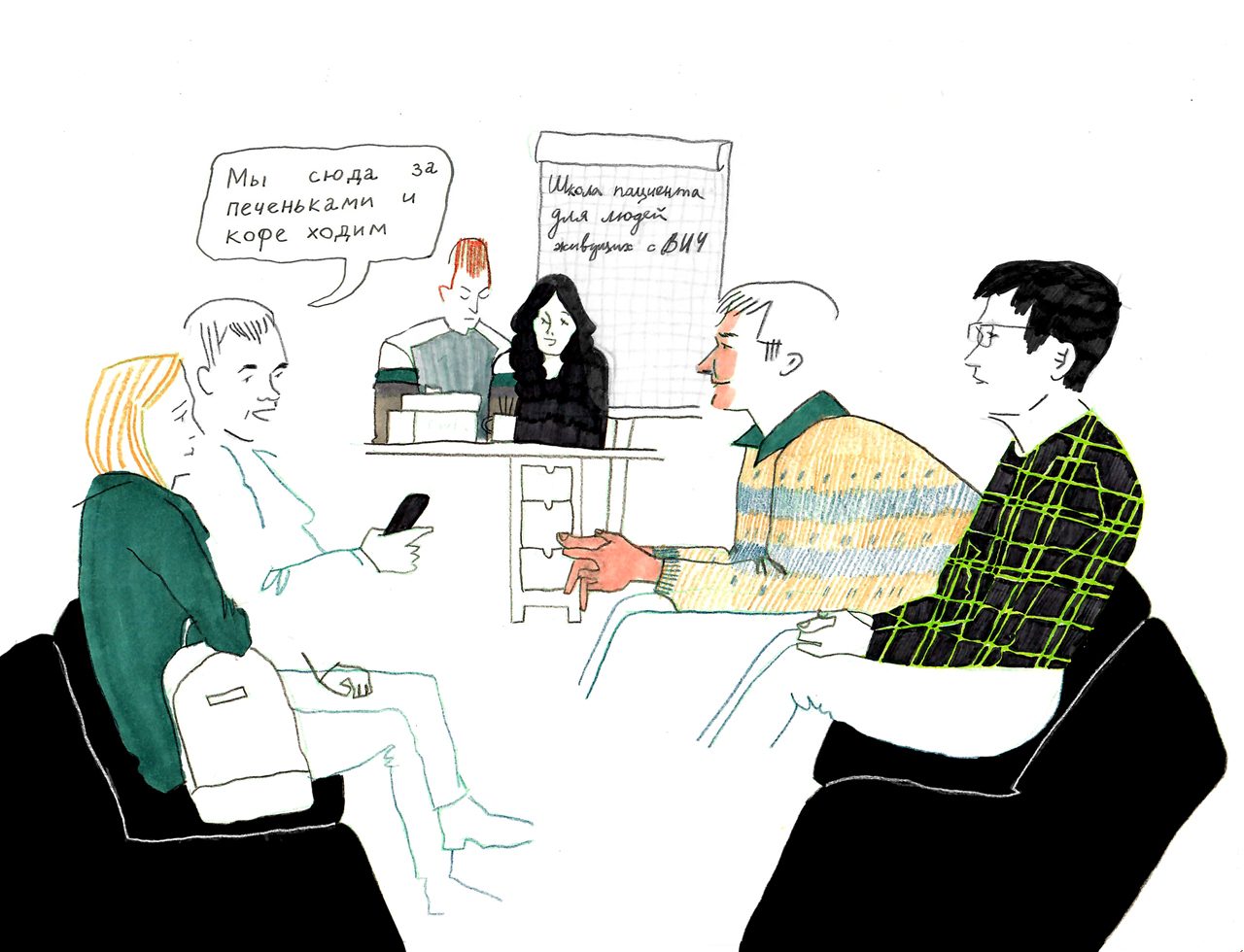 В группе можно найти друзей, моральную поддержку и в конце концов надежду, что ВИЧ не перечеркнет остаток жизни, если следовать рекомендациям врача.
