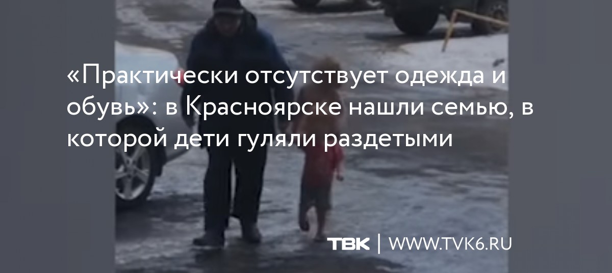 «ТВК Красноярск» опубликовали видео, на котором мужчина ведет по улице двоих раздетых детей. Сотрудники полиции провели проверку. Оказалось, что семья приехала из ближнего зарубежья, в ней воспитывается трое несовершеннолетних.