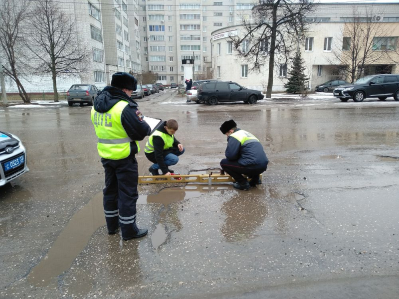 С таянием снега сотрудники ГИГДД решили проверить качество дорожного покрытия в городе Гусь-Хрустальный.