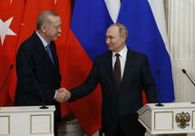 Перед началом перегоров Путин выразил Эрдогану соболезнования в связи с гибелью в Идлибе турецких военных. "К сожалению, как я уже говорил в телефонном разговоре, никто, и в том числе сирийские военнослужащие, не знали о месте их нахождения", - добавил он.