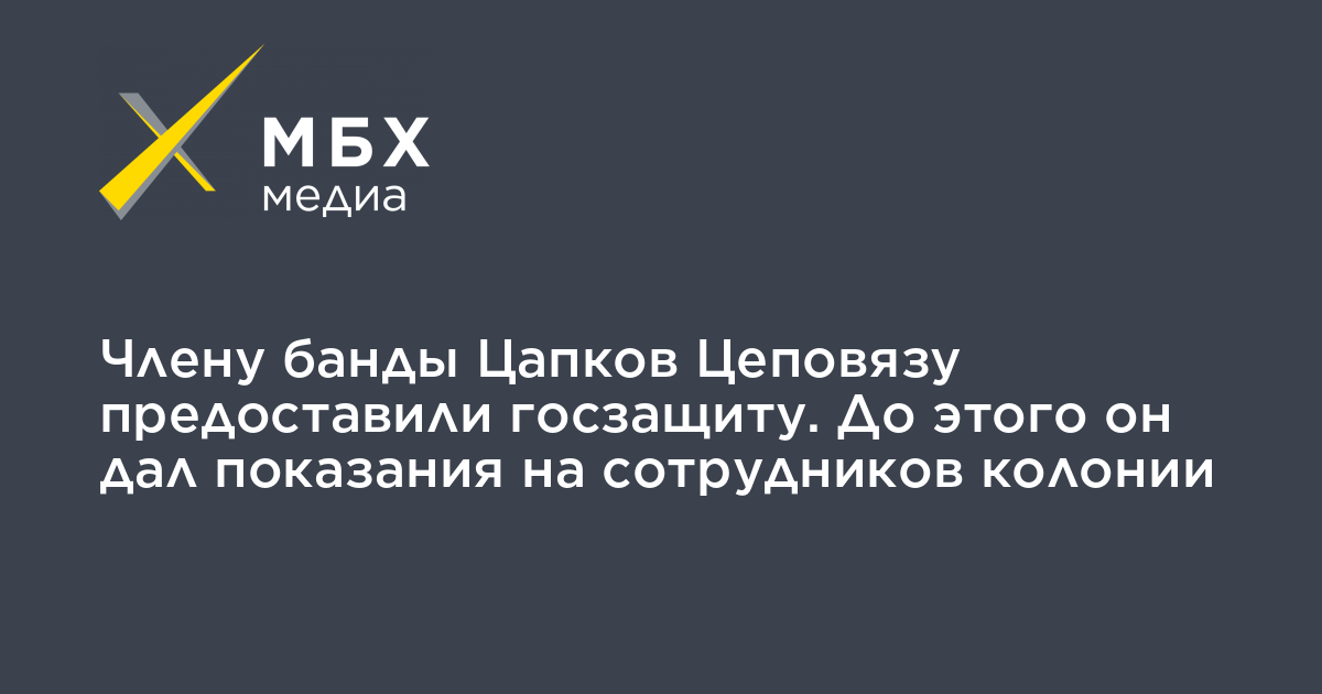 Члену банды Цапков Цеповязу предоставили госзащиту. До этого он дал показания на сотрудников колонии