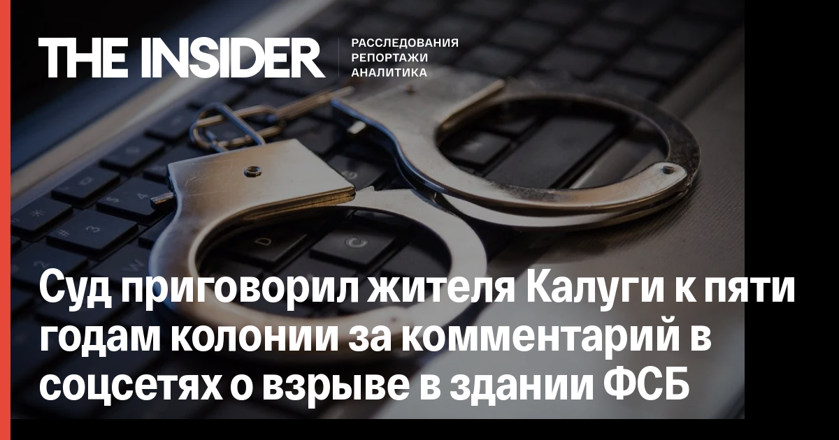 Суд приговорил жителя Калуги к пяти годам колонии за комментарий в соцсетях о взрыве в здании ФСБ