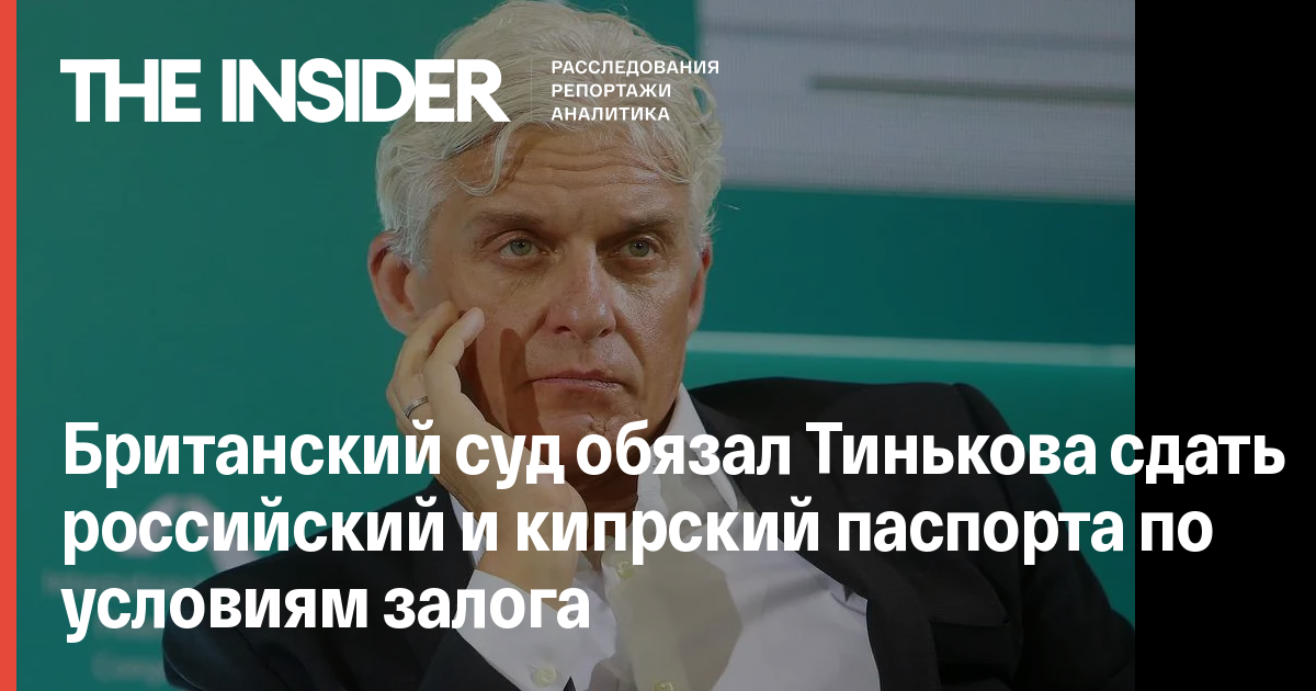 Британский суд обязал Тинькова сдать российский и кипрский паспорта по условиям залога