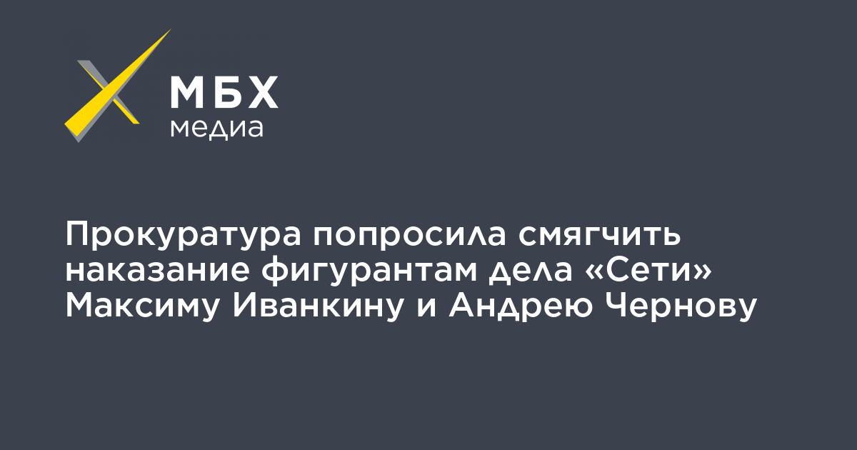Прокуратура Пензенской области попросила смягчить наказание двум фигурантам дела «Сети» — Максиму Иванкину и Андрею Чернову, приговоренным к 13 и 14 годам колонии строгого режима. Об этом сообщает «7х7» со ссылкой на адвокатов осужденным.
