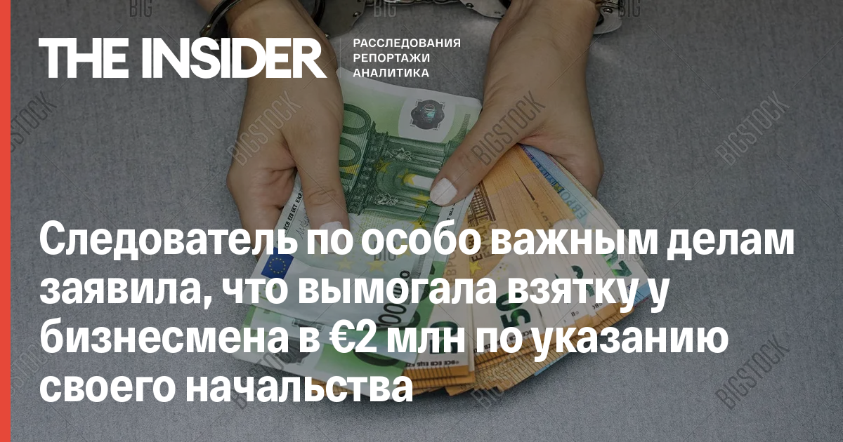Следователь по особо важным делам заявила, что вымогала взятку у бизнесмена в €2 млн по указанию своего начальства