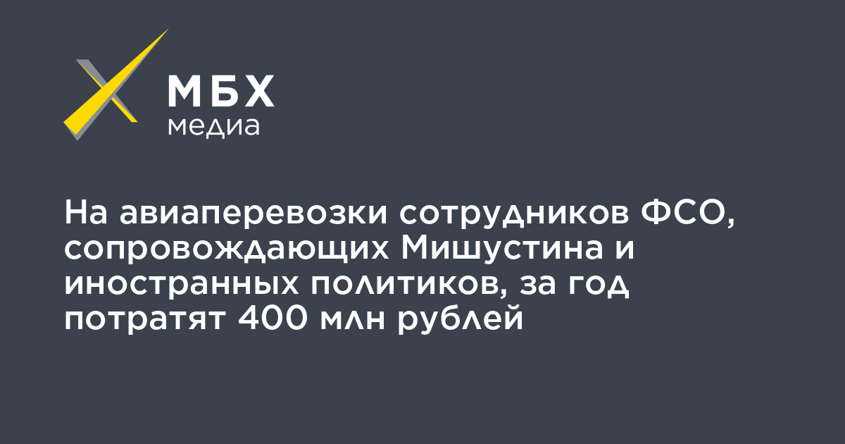 Управление делами президента выделило 400 млн рублей на авиаперевозки сотрудников и имущества Федеральной службы охраны (ФСО), сопровождающих премьер-министра Михаила Мишустина на «выездных мероприятиях» в 2020 году. Соответствующие документы «МБХ медиа» обнаружило на портале госзакупок.