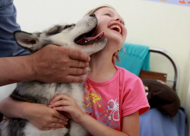 Во всех детских больницах приводят терапевтических собак. Это особенно заметно в детской онкологии. Дети лежат подолгу, лечение тяжелое, да и при всех последних достижениях для кого-то это будет последняя госпитализация.