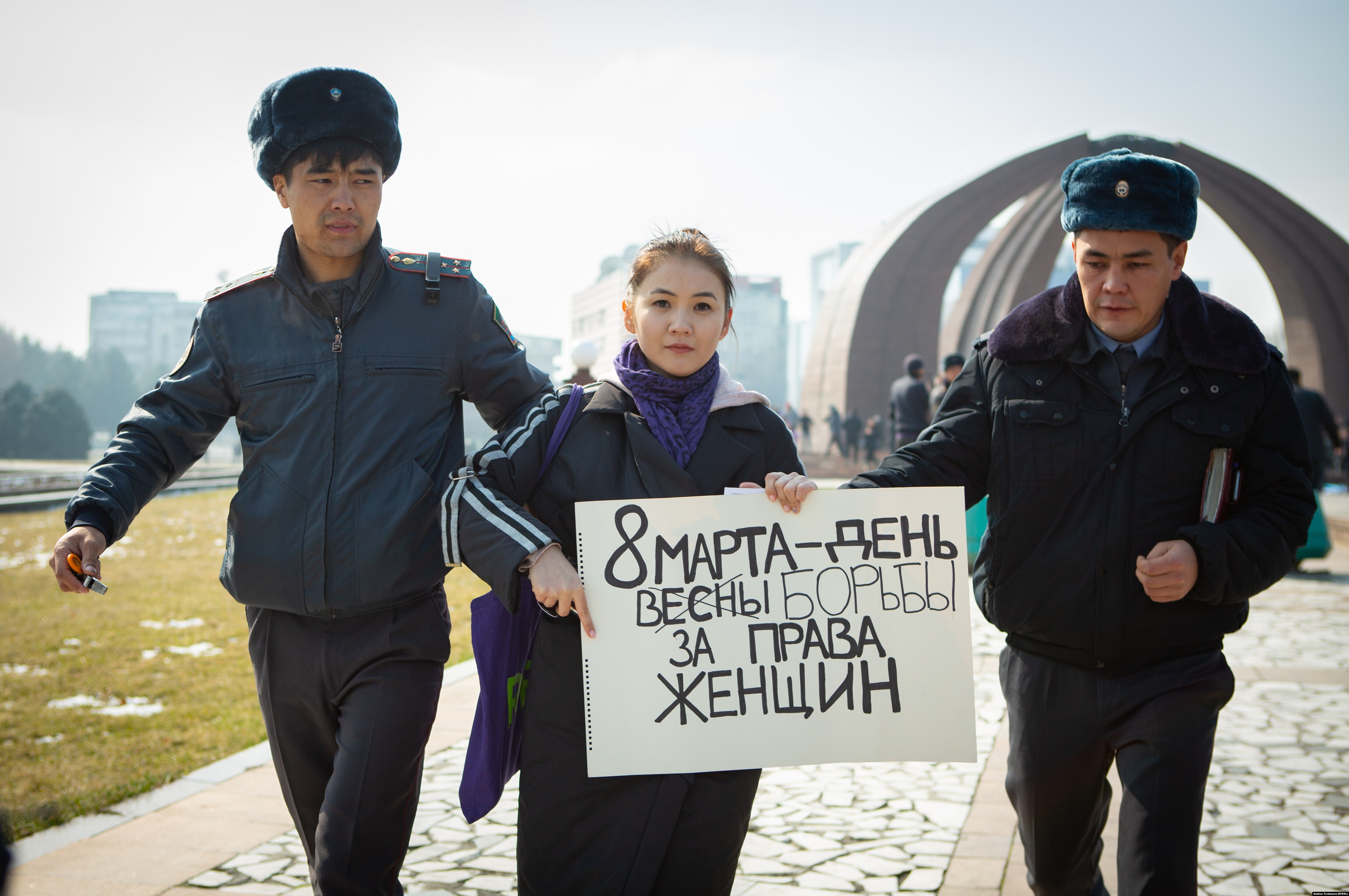 В столице Киргизии Бишкеке несколько участников марша за права женщин были задержаны полицией.
