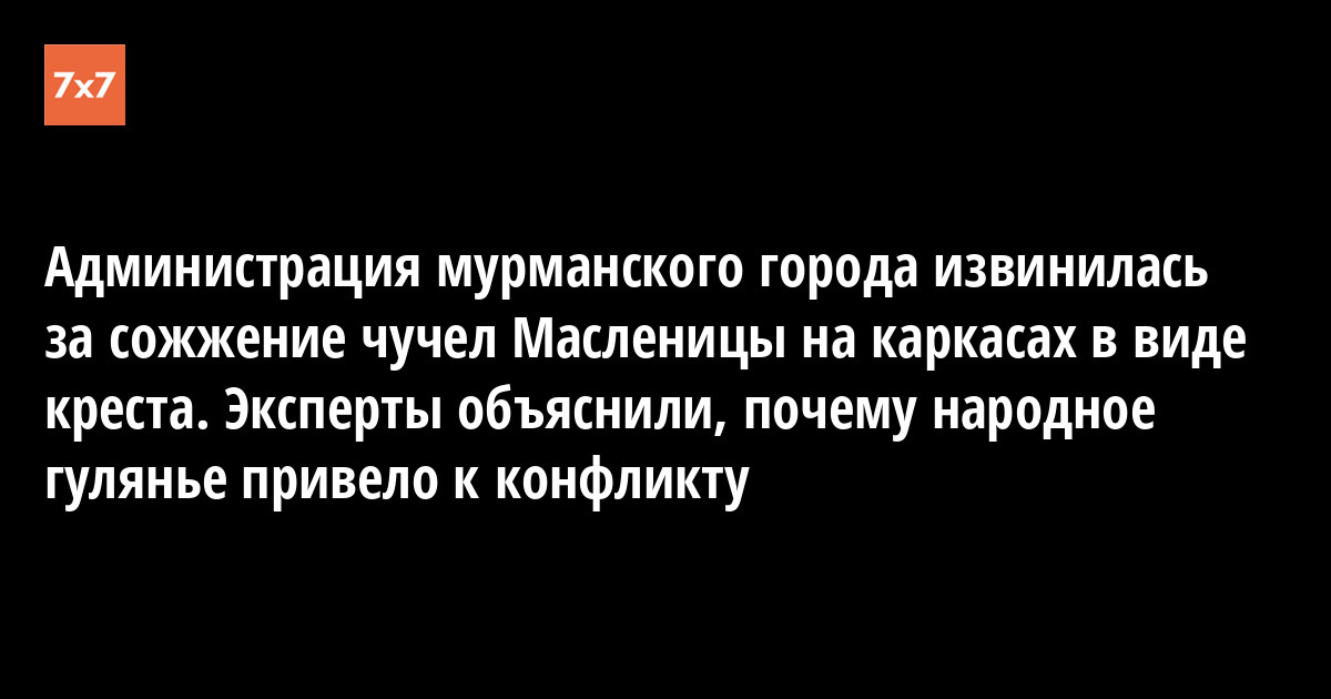 Администрация мурманского города извинилась за сожжение чучел Масленицы на каркасах в виде креста. Эксперты объяснили, почему народное гулянье привело к конфликту