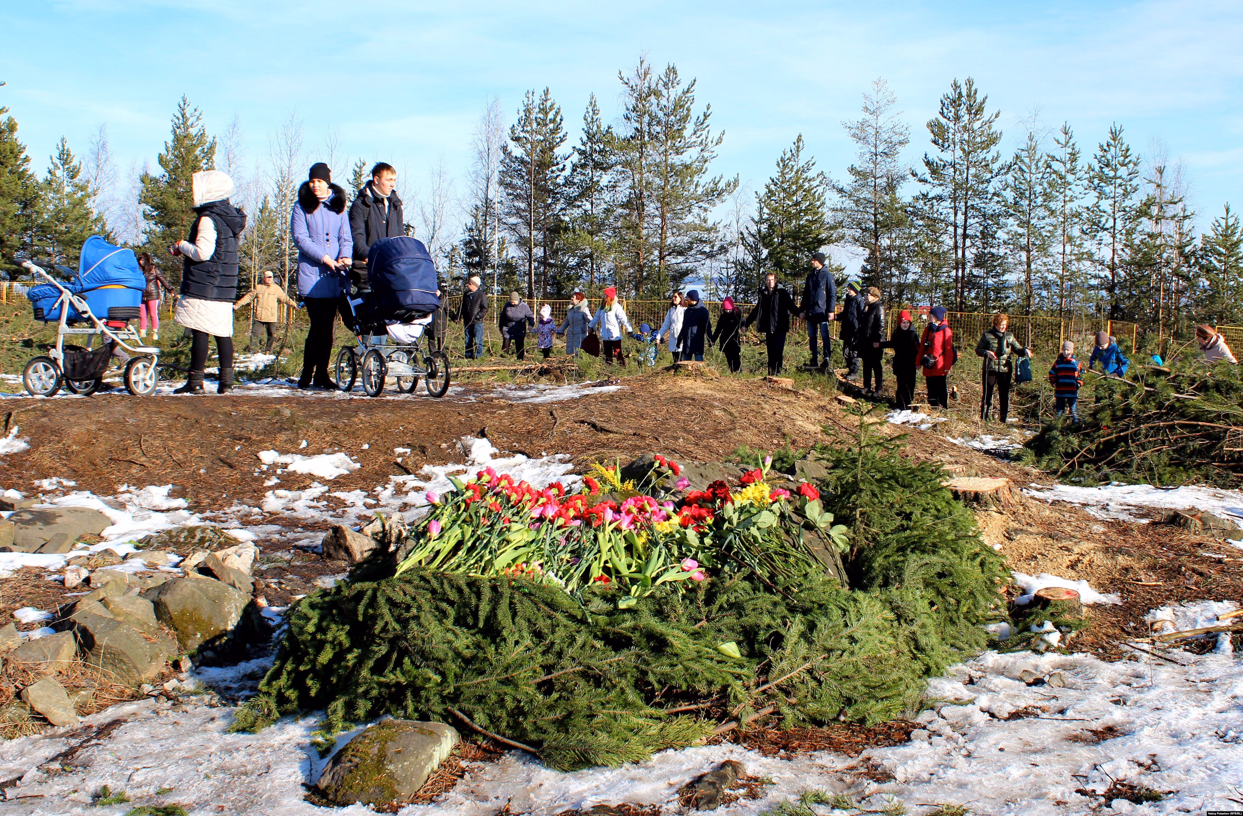 Жители Петрозаводска вышли на акцию в защиту парка "Каменный бор", где городская администрация намерена построить детский сад в рамках Федеральной программы развития региона. Около двухсот человек собрались на строительной площадке, возложили цветы на месте памятника бойцу истребительного батальона Якову Степанову, уничтоженного во время сноса деревьев под детский сад, после чего выстроились вокруг парка в живую цепь.
