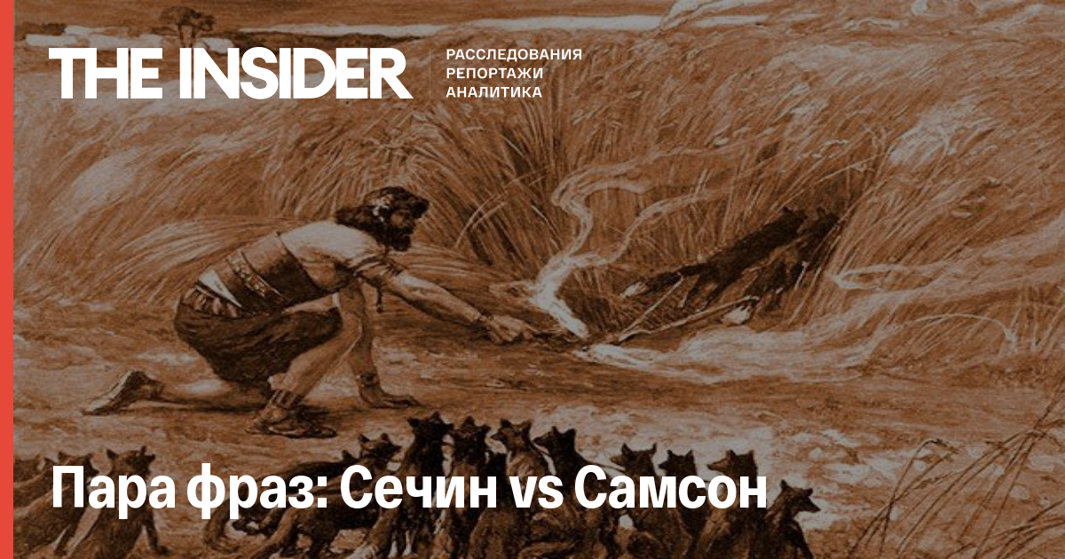 «Собрал Самсон триста лисиц и говорит:— Вот какое дело: надо отомстить филистимлянам. Сейчас я подожгу вам хвосты, а вы побежите и выжжете все их поля.Лисицам понравилась такая идея. Подставили хвосты, побежали.— Ну и хитер наш Самсон!— Шутка сказать — до такого додуматься!Бегут лисицы — ног под собой не чуют:— О, это будет месть!— Страшная месть!Бегут лисицы, объятые пламенем:— Ох и достанется филистимлянам!— Представляете, какой у них будет вид?— Да, не хотелось бы быть на их месте!»