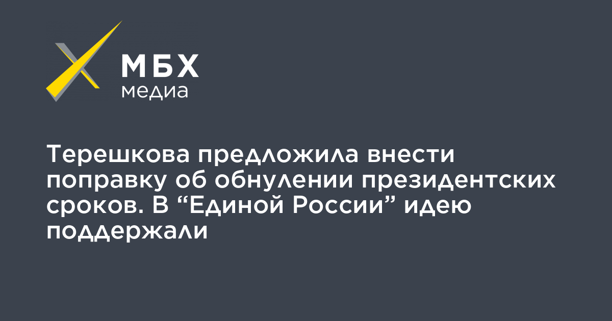 Терешкова предложила внести поправку об обнулении президентских сроков. В «Единой России» идею поддержали