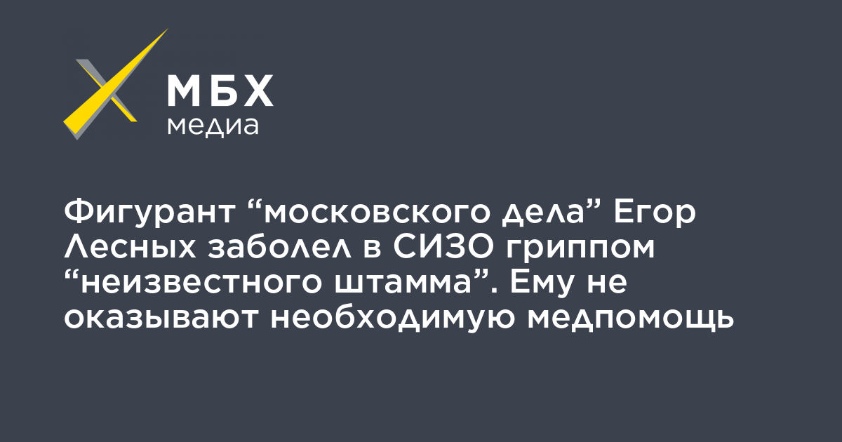 Фигурант «московского дела» Егор Лесных заболел в СИЗО гриппом «неизвестного штамма». Ему не оказывают необходимую медпомощь