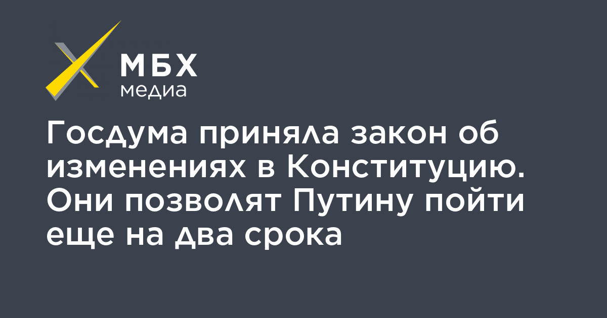 Госдума приняла закон об изменениях в Конституцию. Они позволят Путину пойти еще на два срока