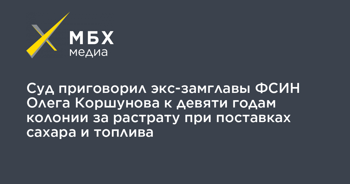 Замоскворецкий суд Москвы приговорил экс-замглавы ФСИН Олега Коршунова к девяти годам колонии общего режима за растрату при поставках сахара и топлива. Об этом сообщает «Московский комсомолец».