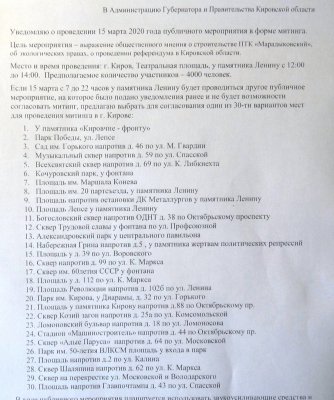 Кировские власти не согласовали митинг ни на одной из 31 площадок. Но предложили свою на окраине