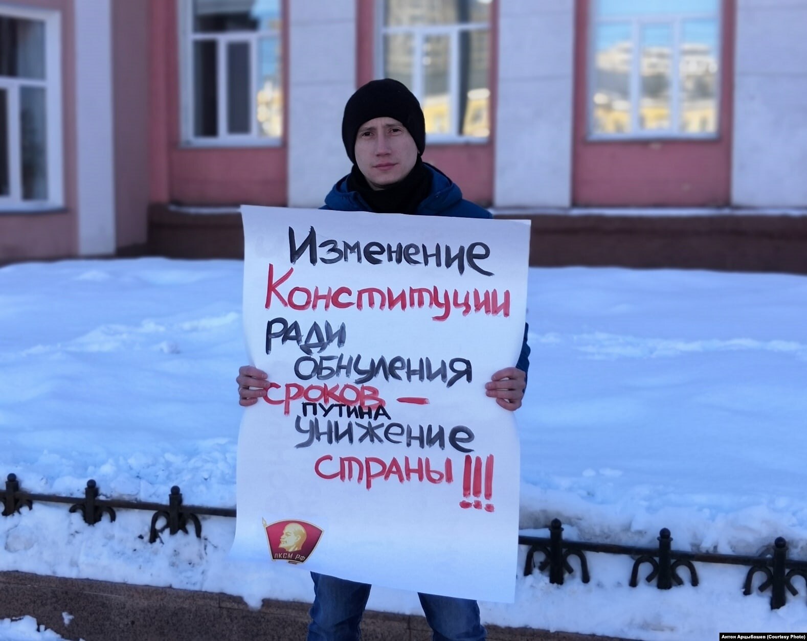 В Барнауле гражданские активисты провели серию одиночных пикетов против инициативы депутатов Госдумы за "обнуление" президентских сроков Владимира Путина. Об этом корреспонденту Сибирь.Реалии сообщил участник акции, активист Антон Арцыбашев. Акция прошла в центре города на площади Октября.