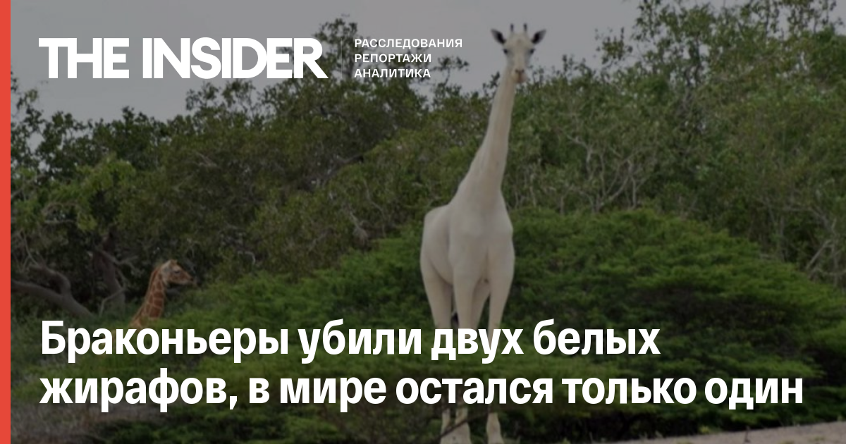 В заповеднике Кении сотрудники обнаружили останки двух редчайших белых жирафов — матери и детёныша. Всего в мире их было три, а теперь последний представитель остался в одиночестве. По утверждению сотрудников парка, животных убили браконьеры.
