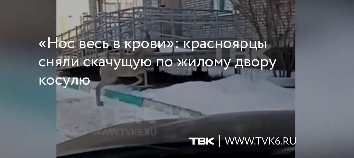 Красноярцы сняли скачущую по жилому двору косулю. Видео прислал подписчик «ТВК Красноярск». По его словам, дикое животное он заметил утром в жилом дворе по ул. 60 лет октября, 26а. Очевидец уверен, что у животного был окровавлен нос.