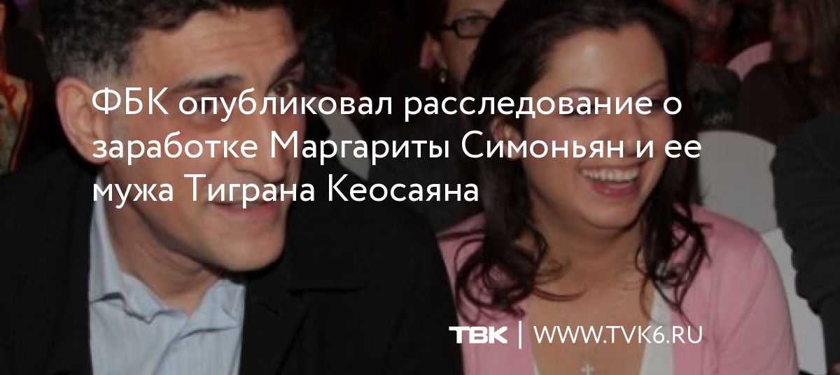 ФБК опубликовал расследование о заработке Маргариты Симоньян и ее мужа Тиграна Кеосаяна