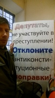 13:10 Активиста Алексея Семенова, который стоял с пикетом у здания Госсовета Коми против поправок в Конституцию, задержал сотрудник полиции. Об этом ОВД-Инфо рассказал сам Семенов. Сейчас на него в патрульной машине составляют протокол о нарушении правил проведения публичных мероприятий (ст. 20.2 КоАП).