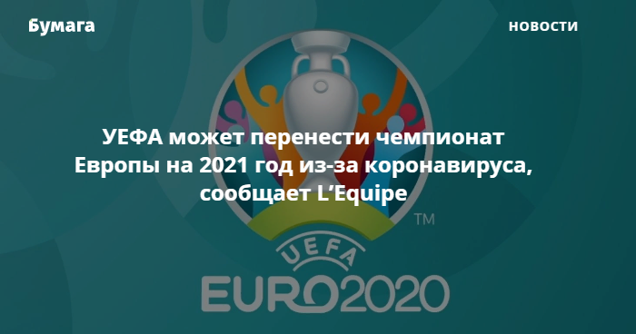 В УЕФА ранее официально объявили о проведении экстренного заседания в связи с эпидемиологической ситуацией. На нем обсудят судьбу Лиги чемпионов, Лиги Европы, национальных чемпионатов и чемпионата Европы 2020. L’Equipe сообщает, что после него о переносе Евро сообщат официально.