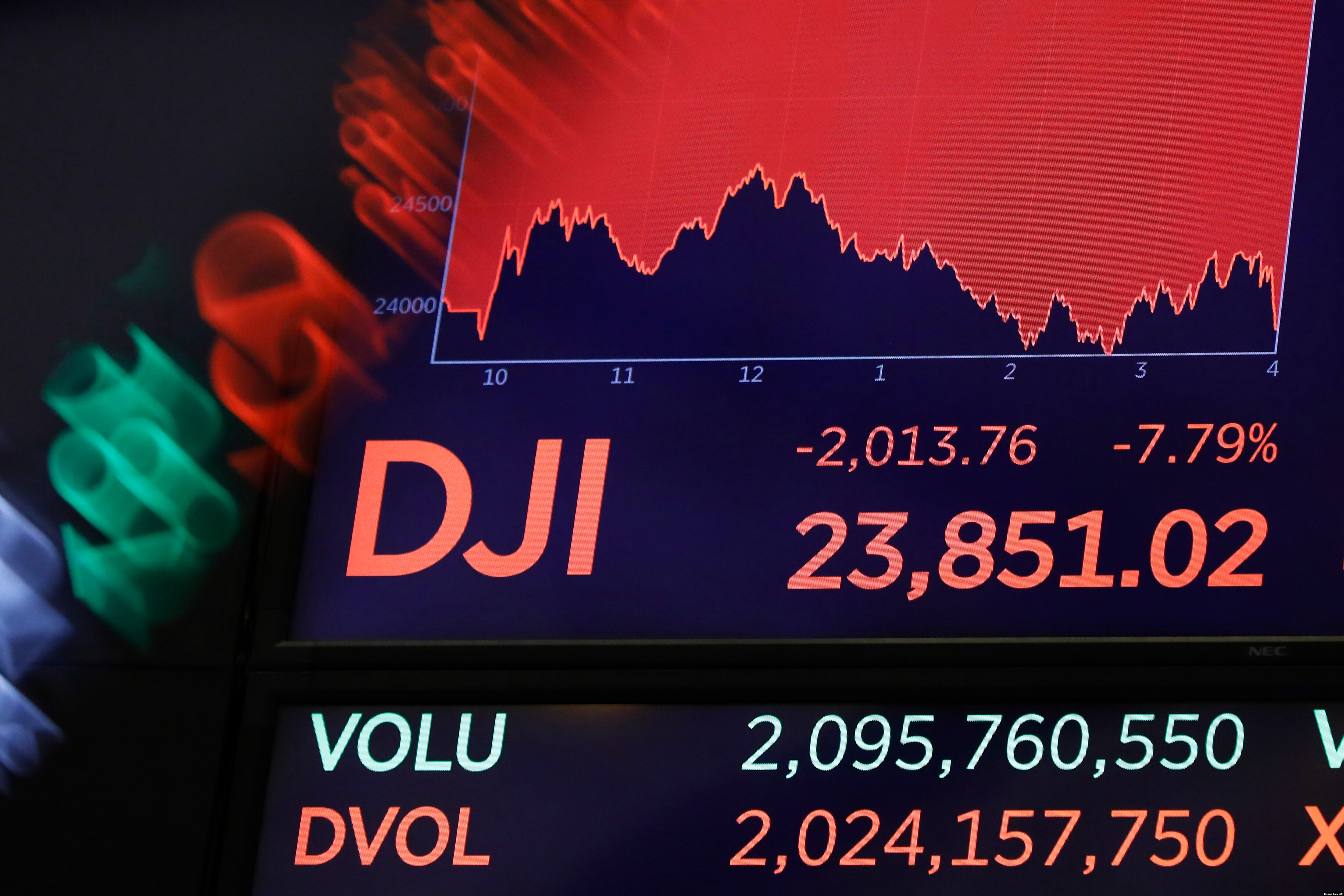 Торги на американских фондовых биржах остановили через пять минут после открытия из-за падения индексов S&P500, Nasdaq Composite и Dow Jones более чем на семь процентов. На закрытии Нью-Йоркской фондовой биржи Dow Jones упал более, чем на девять процентов. Такого падения не было с 1987 года.