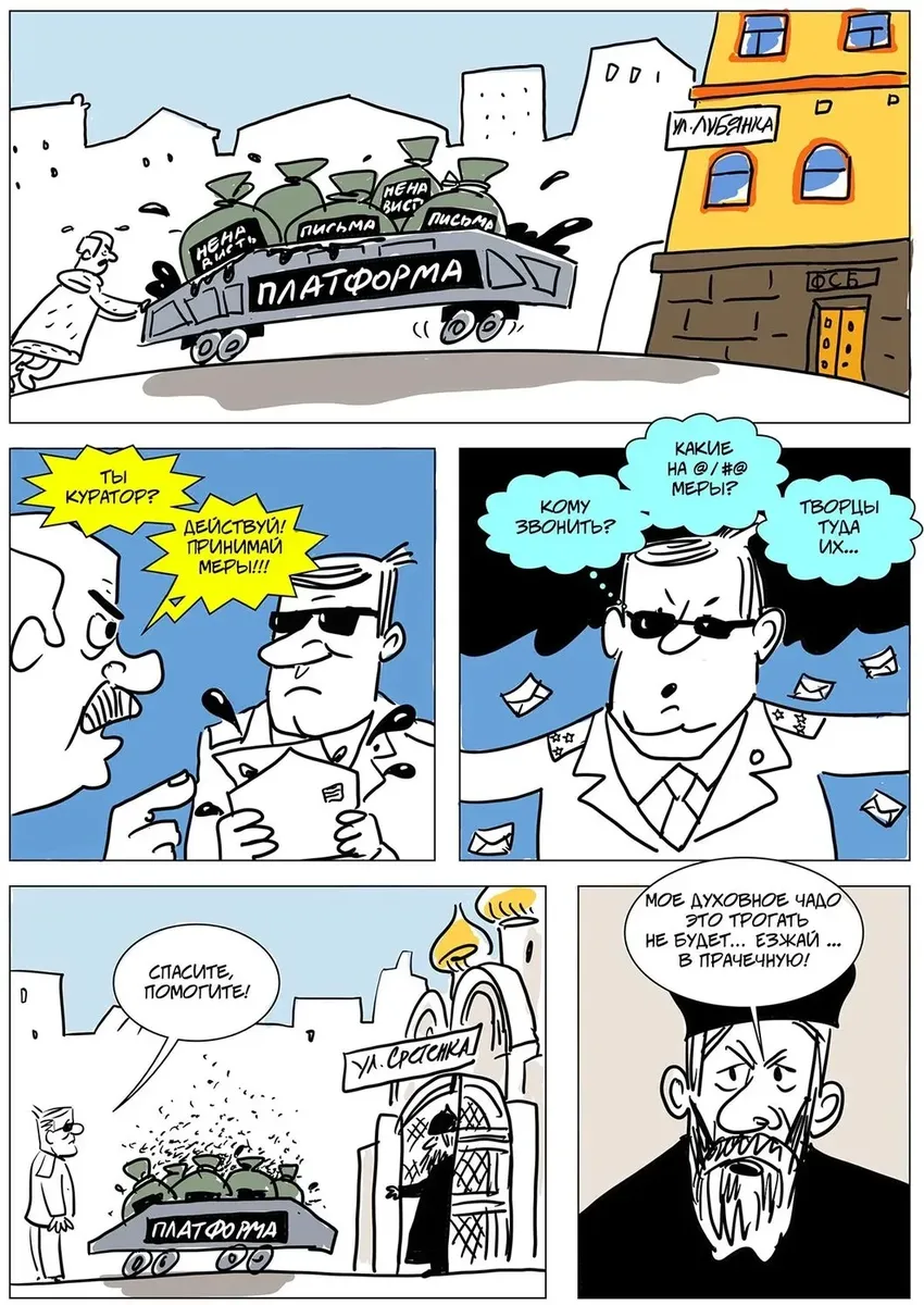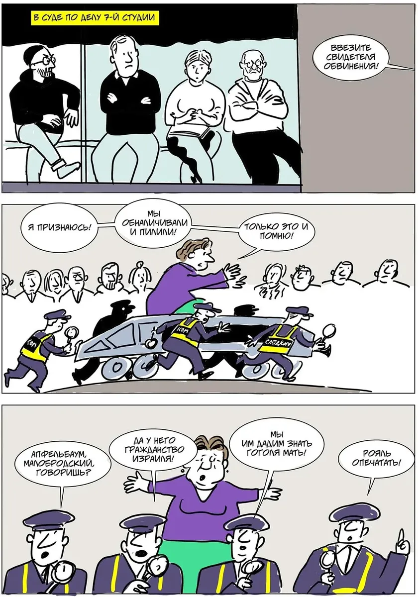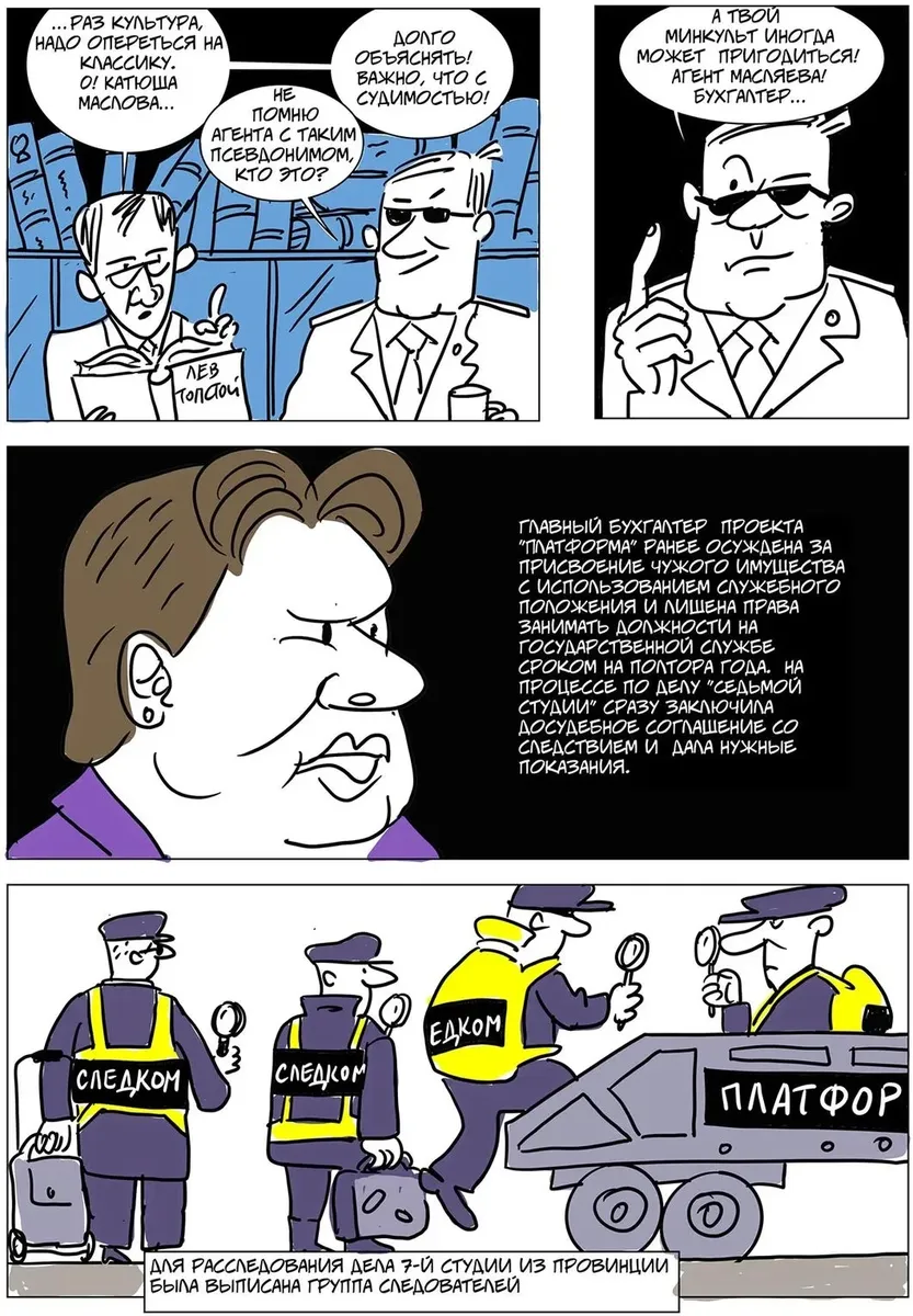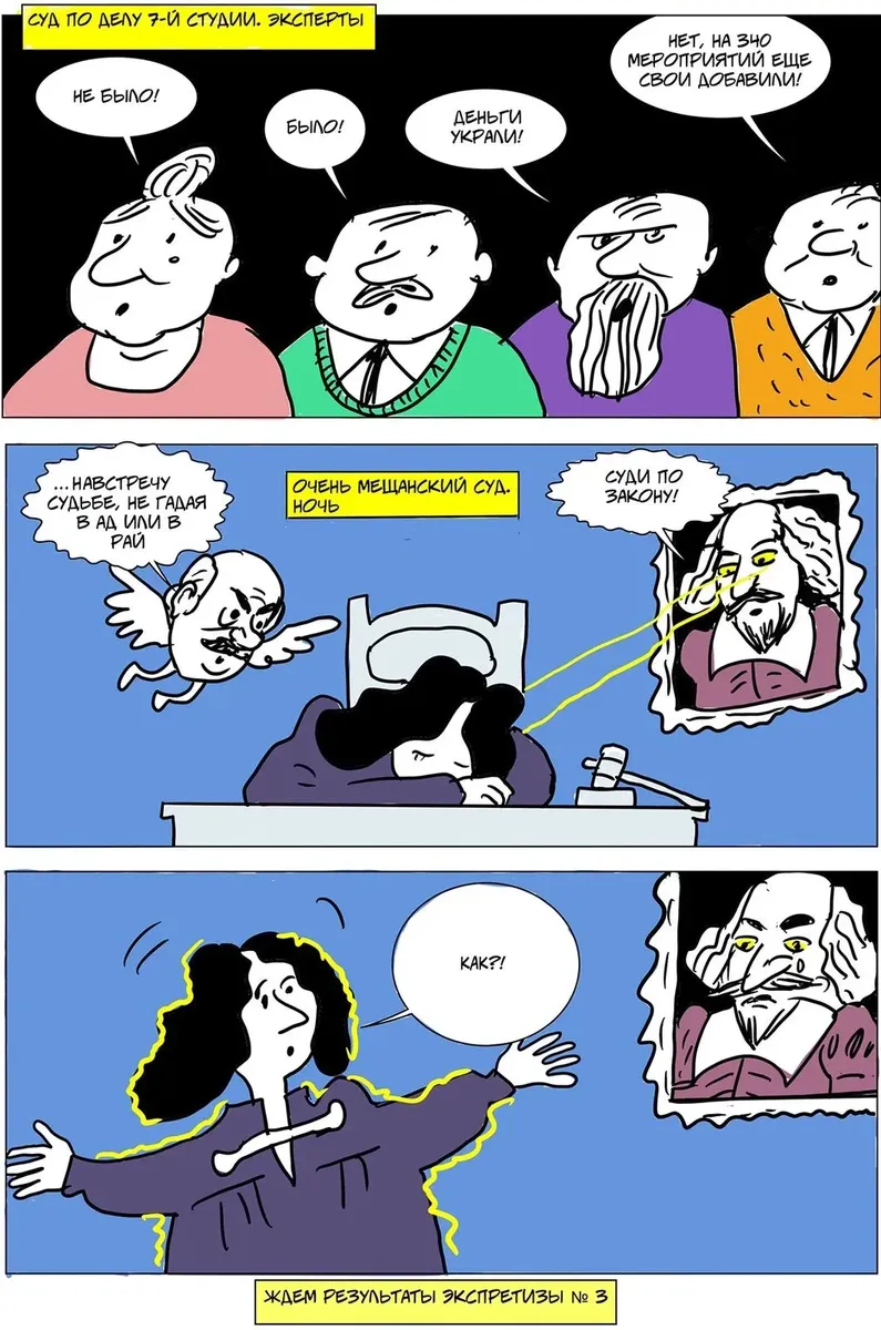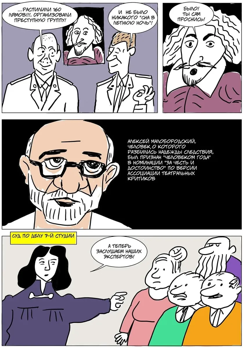 Мы же вам говорили! Показывали и рассказывали. Истинность описанных «Новой» событий подтверждает фактчекинг этих самых событий. После скандальной новости о взломанной переписке митрополита Тихона Шевкунова, в которой нашлось место обмену мнениями двух завзятых театралов, самого митрополита и Никиты Михалкова, «Новая газета» цитирует себя — ещё раз публикует комикс, посвящённый истории процесса «Седьмой студии». Очередное слушание по делу назначено на 6 мая.