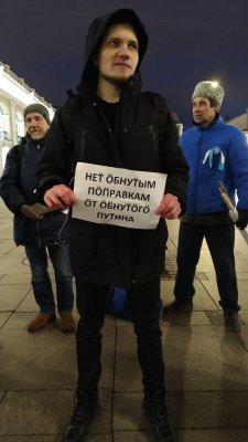 В Санкт-Петербурге у станции метро «Невский проспект» задержали гражданского активиста Дмитрия Васильева, который стоял в одиночном пикете против обнуления срока президенских полномочий. Об этом он сам сообщил на горячую линию ОВД-Инфо.