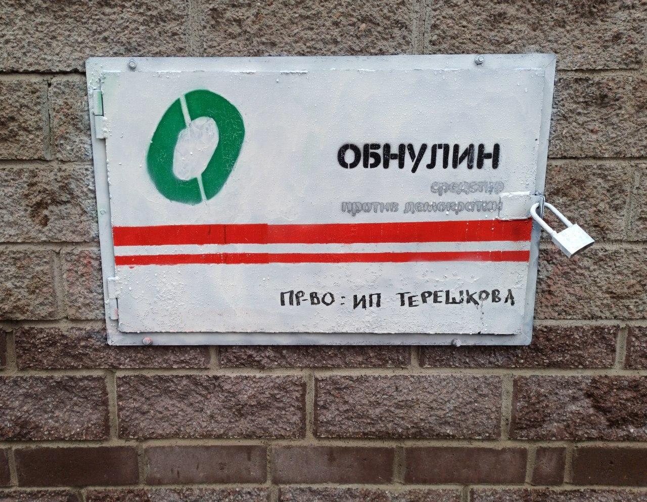 Петербургский художник Loketski на Парнасе создал арт-объект "Обнулин". Он нарисовал на фасадном люке пачку "средства от демократии" Обнулин". Фото он выложил в своем инстаграме.