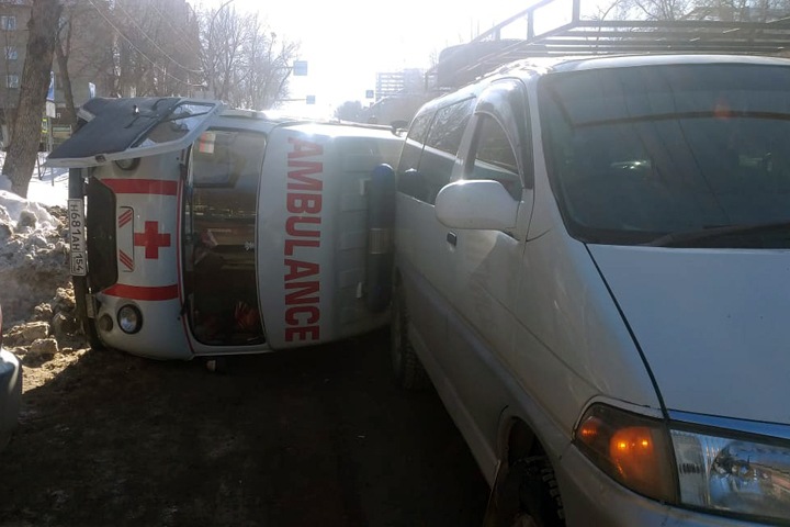 Скорая помощь въехала в сугроб и перевернулась в Новосибирске