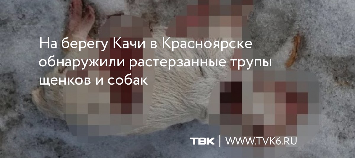 Днем 13 марта в Красноярске на набережной р. Кача горожане нашли несколько трупов собак. Среди них несколько щенков и взрослая особь. «ТВК Красноярск» рассказали, что тела были растерзаны, а характер травм похож на насилие над животными.