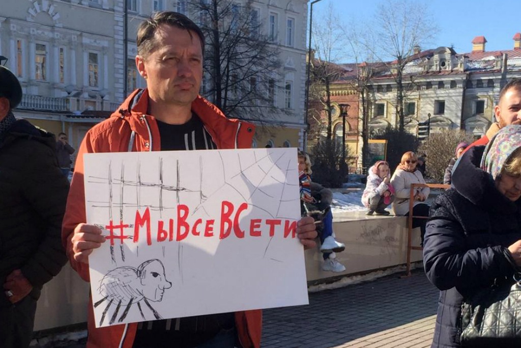 Митинг в поддержку фигурантов дела «Сети» и политических заключенных прошел на площади Труда в Иркутске 14 марта. По оценкам корреспондента Тайги.инфо, на акцию пришли около 400 человек.