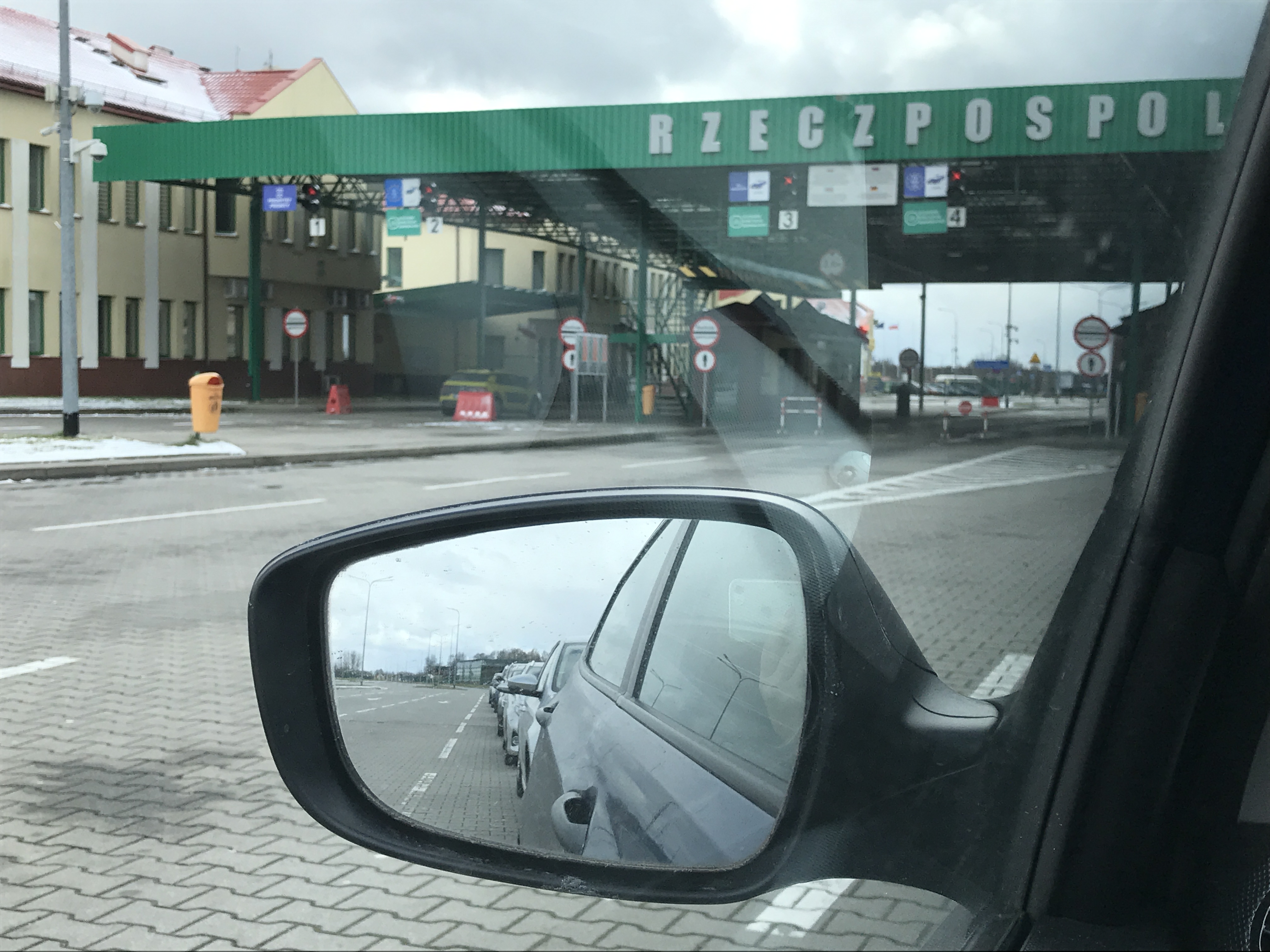 Санитарный контроль проходит быстро. Но перед шлагбаумом на нейтральной полосе приходится простоять два часа в ожидании, пока начнут запускать на погранпереход в одной очереди. С 11 марта поляки изменили схему движения на границе. Раньше водители с паспортами Евросоюза оформлялись отдельно, а для россиян было предусмотрено несколько очередей. Теперь же отдельно едут только фуры и автобусы, а водители всех легковушек, не важно, с какими паспортами, стоят в одной "колейке".