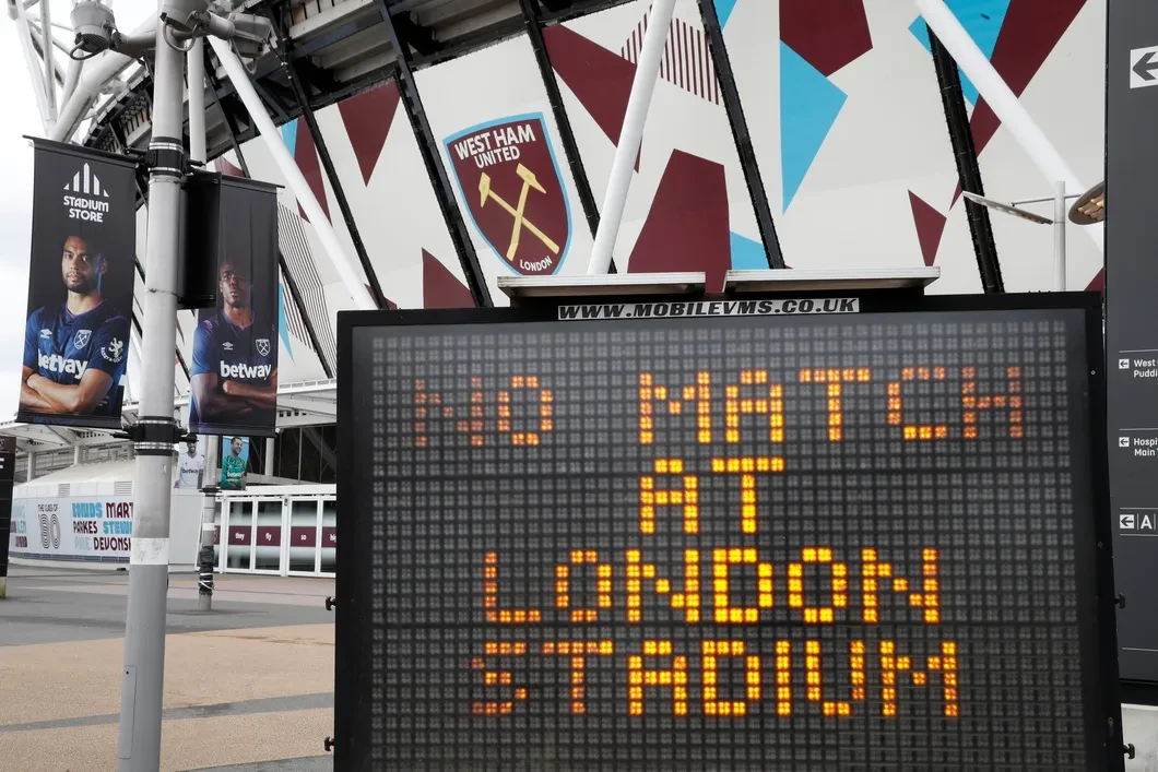Табло на Олимпийском стадионе Лондона информирует об отмене матчей. Фото: Reuters