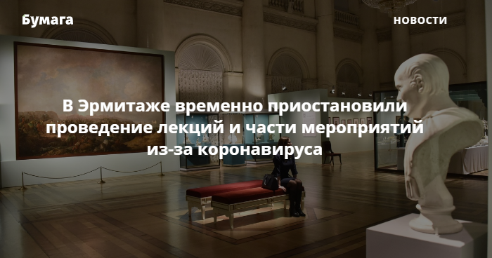 Мероприятия лектория Эрмитажа и молодежного центра Эрмитажа перестанут проводить на неопределенный срок из-за распространения коронавируса. Об этом сообщили на страницах проектов в соцсетях.
