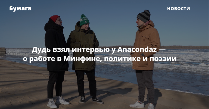 Юрий Дудь в новом выпуске своего ютьюб-шоу взял интервью у музыкантов из группы Anacondaz Сергея Карамушкина и Артема Хорева. Они поговорили про карьеру и песни, работу Хорева в министерстве финансов, политику и современную поэзию.