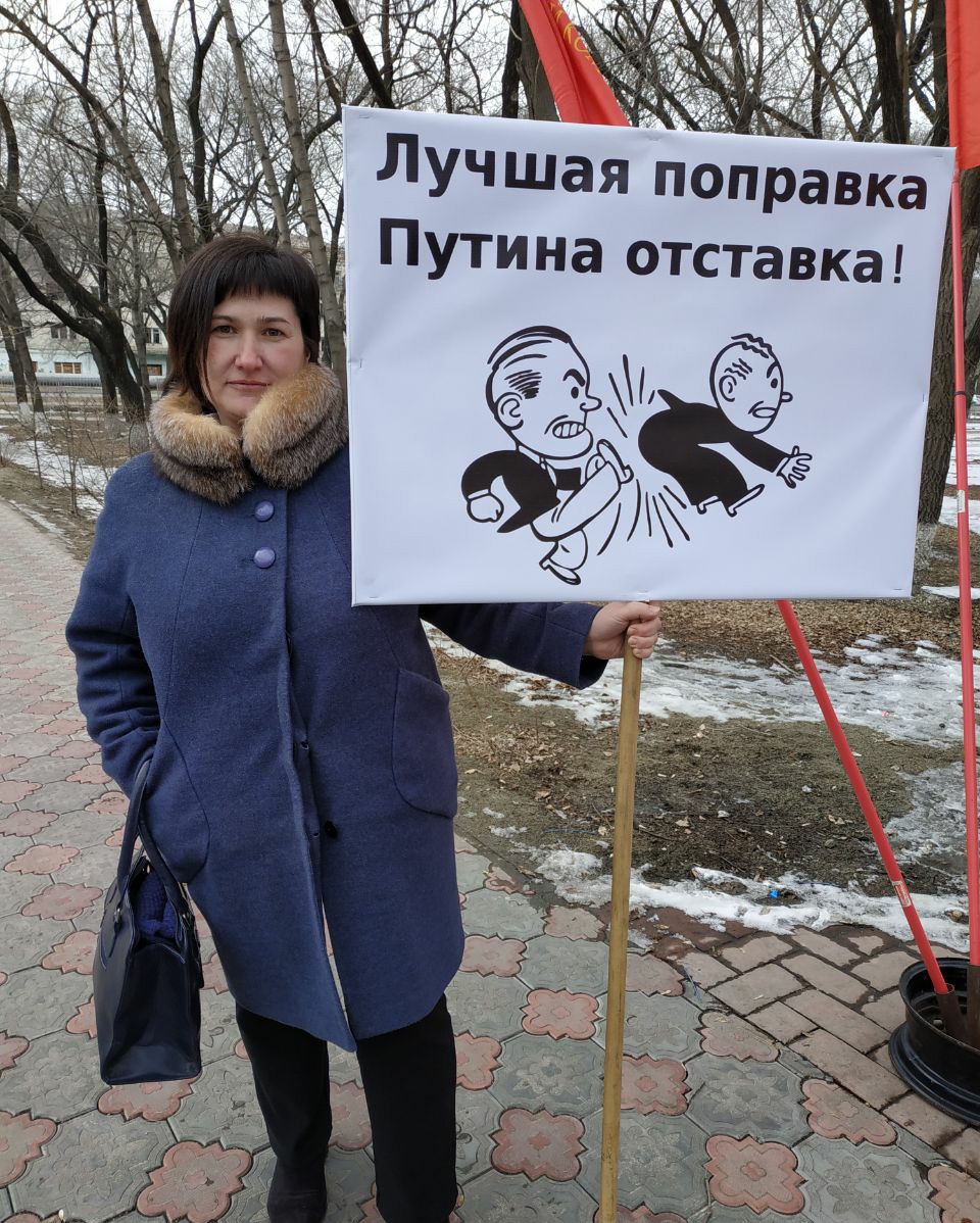 На пикете против поправок жители Благовещенска фотографировались у баннера "Лучшая поправка – Путина отставка"