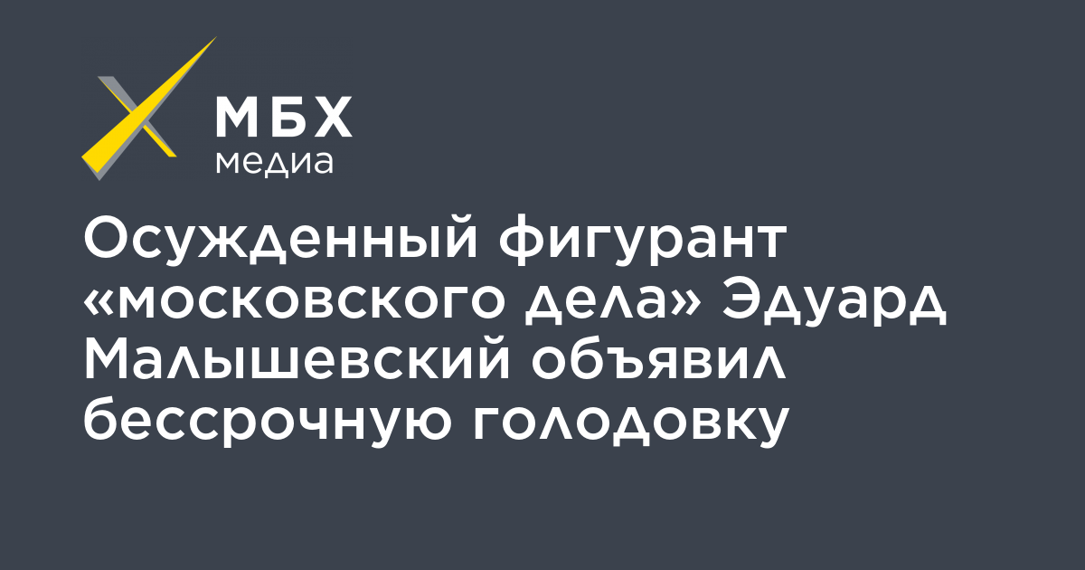 Осужденный фигурант «московского дела» Эдуард Малышевский с 28 февраля объявил бессрочную голодовку в СИЗО-1 в Курске, сообщил «МБХ медиа» адвокат «Агоры» Александр Альдаев.