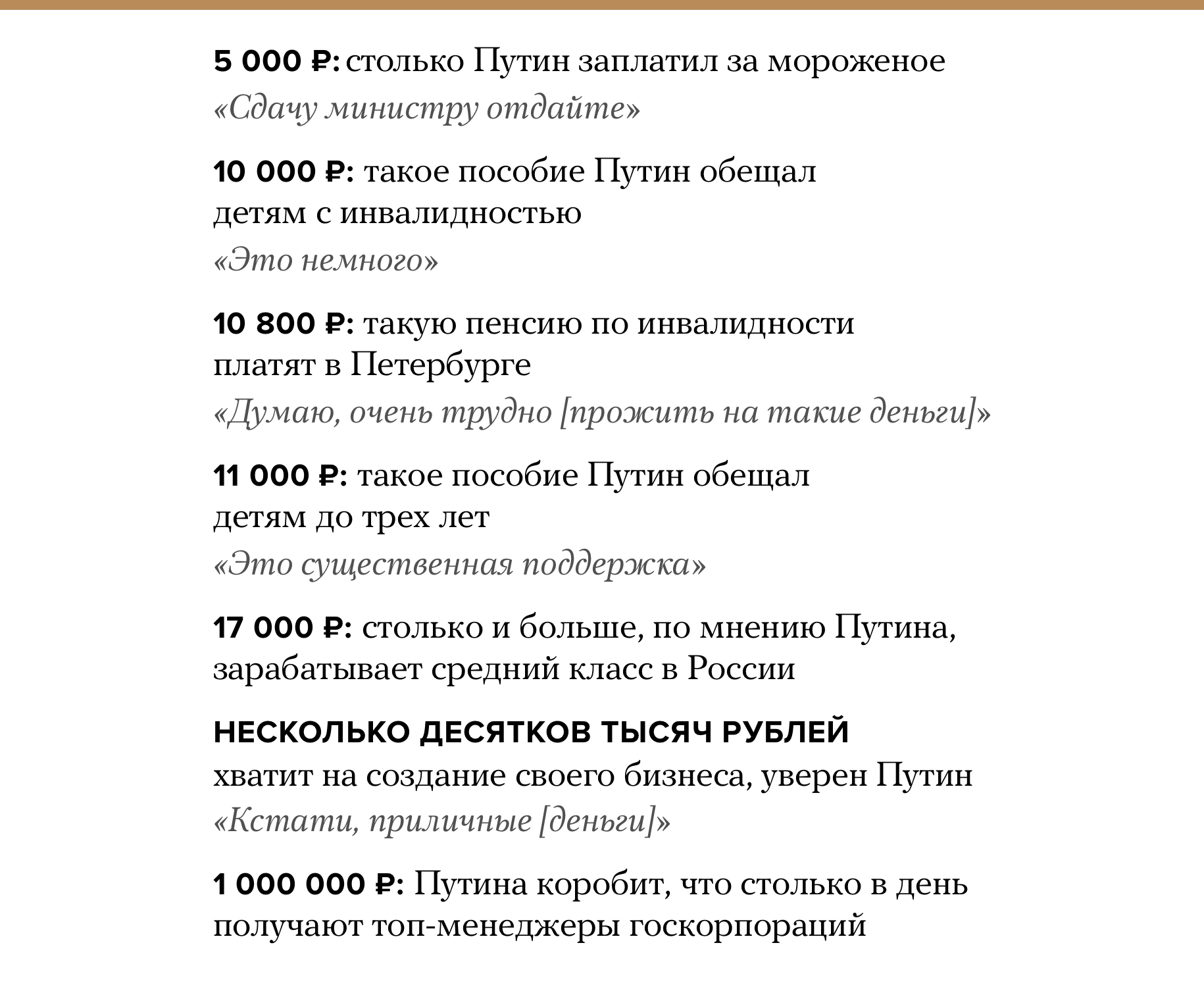 Владимир Путин сказал, что россияне с доходом 17 тысяч рублей — это средний класс. Показываем, как вообще президент разбирается в деньгах