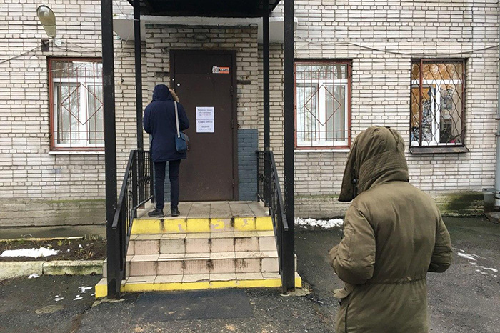 К 11:30 у входа стоят около 15 человек — людей принимают с 8 до 18 часов. Друг к другу они не приближаются и без координации со стороны сохраняют дистанцию примерно в два метра. На половине собравшихся медицинские маски, у некоторых — респираторы.