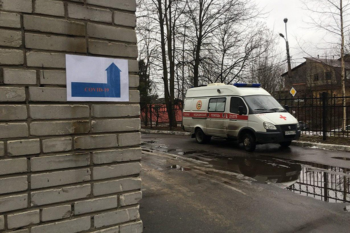 У двери поликлиники висит указатель — отдельный вход для обследующихся на коронавирус находится с обратной стороны здания. Заблудиться не получится: на углах повесили стрелки с надписью COVID-19. К тому же к двери, за которой берут анализы, тянется очередь.